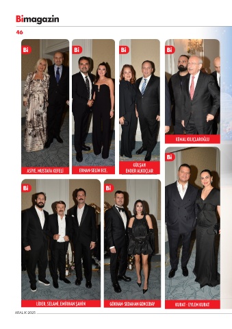 46 Bi Bi Bi Bi KEMAL KILIÇLAROĞLU Bi GÜLŞAH ASIYE, MUSTAFA KEFELI ERHAN-SELIN ECE, ENDER ALKOÇLAR Bi Bi LIDER, SELAMI, EMIRHAN ŞAHIN GÖKHAN- SEDAHAN GENCEBAY KUBAT - EYLEM KUBAT ARALIK 2025
