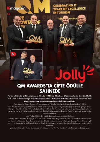 Turizm sektörünün güçlü markalarından Jolly, bu yıl 15’incisi düzenlenen QM Awards’tan iki önemli ödül aldı.